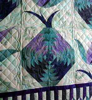 It's a real advantage having two of us working on quilts with this much detail! Johnny's signature curlicues were used to fill in around the applique on the top and side borders: